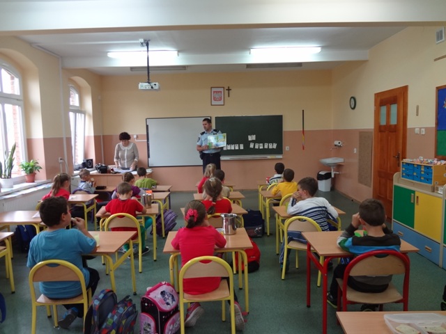 Jak poruszać się po drodze? Czy wolno wpuszczać do domu nieznajomych? Jak zachować się w czasie spotkania z groźnym psem? Na te i inne pytania uzyskali odpowiedź uczniowie klasy I na spotkaniu z przedstawicielami straży miejskiej.