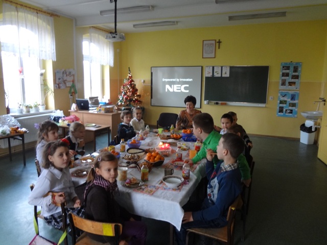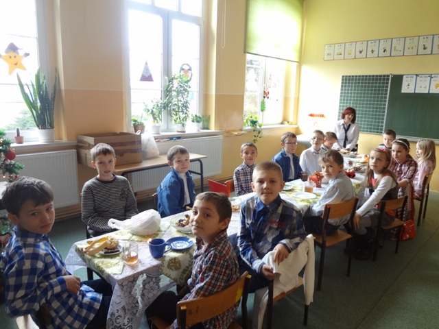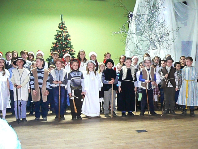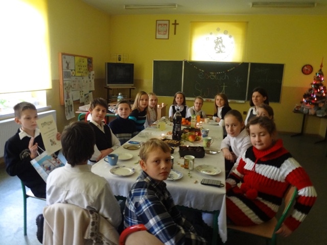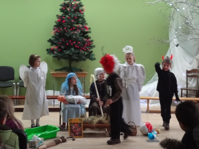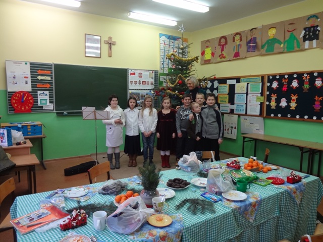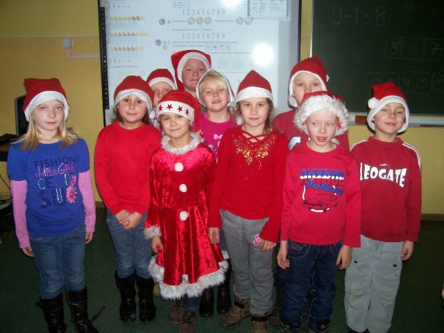 Piątek, 21 grudnia upłynął w naszej szkole w miłej i świątecznej atmosferze. Rozpoczęły go dzieci z oddziału przedszkolnego, które przedstawiły Jasełka, po czym odbyły się uroczyste spotkania w klasach, na których uczniowie wśród śpiewu kolęd i pastorałek poznawali obrzędy i tradycje związane ze Świętami Bożego Narodzenia. Zawitał także gwiazdor, obdarowując wszystkich prezentami.