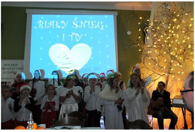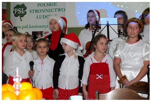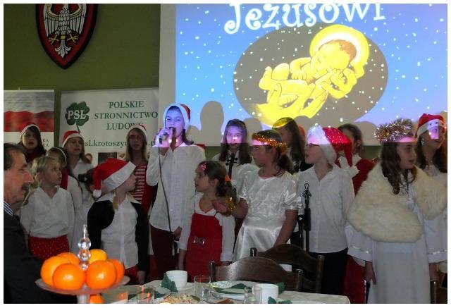 Prezentacja multimedialna o tematyce świątecznej oraz kolędy i pastorałki w wykonaniu uczniów szkoły, uświetniły spotkanie wigilijne PSL Krotoszyn, które odbyło się 14.12.2012r.w Domu Ludowym w Lutogniewie.