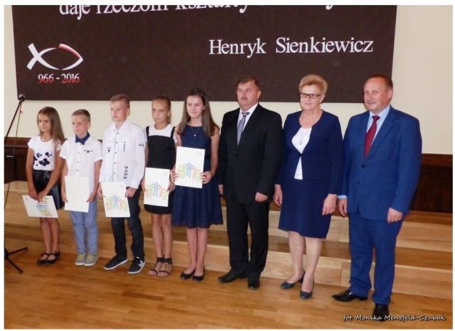 16 września 2016r. w Gimnazjum nr 2 w Krotoszynie odbyła się uroczystość wręczenia Stypendium Burmistrza Krotoszyna za szczególne osiągnięcia w nauce. Wśród nagrodzonych znaleźli się także uczniowie naszej szkoły. Stypendium otrzymali: Anna Murawska – laureatka XX Konkursu Wiedzy o Wielkopolsce, Gabrysia Jaskuła –zdobywczyni 100% punktów ze sprawdzianu klas VI z części polonistycznej, Kornelia Szymczak – finalistka XXXIX Turnieju Wiedzy o BRD, Hubert Konarczak finalista w/w turnieju oraz Piotr Rak. Wszyscy uczniowie uzyskali średnią ocen w II semestrze roku szkolnego 2015/2016 powyżej 5,4. GRATULUJEMY!