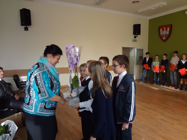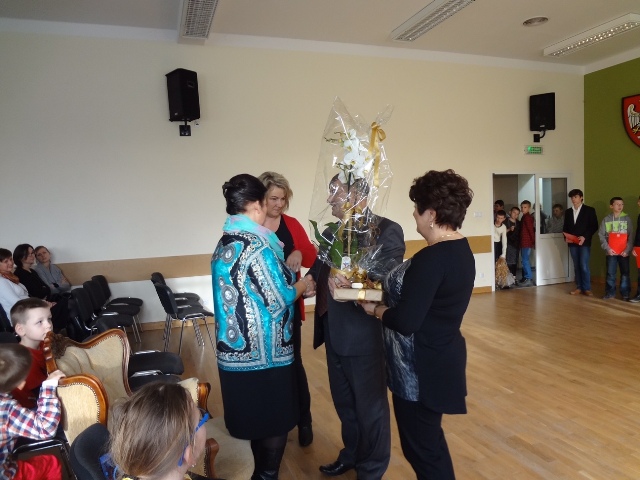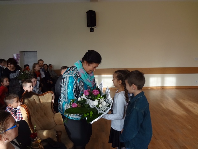 Wszystkim pracownikom szkoły z okazji Święta Edukacji Narodowej uczniowie złożyli życzenia i wręczyli kwiaty.