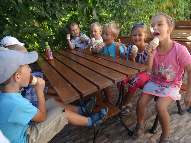 Wakacyjna pogoda zachęciła nas by wybrać się do Kobylina na lody. Wycieczkę rozpoczęliśmy od zwiedzania dworca kolejowego w Krotoszynie. Zapoznaliśmy się z rodzajami lokomotyw i wagonów, podziwialiśmy starą zabytkową kolejkę wąskotorową . Przejazd do Kobylina pociągiem okazał się niesamowitym przeżyciem. Wielu z nas po raz pierwszy jechało koleją. Po lodowej uczcie, bawiliśmy się w nasze ulubione zabawy.