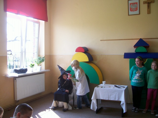 Kwiecień to miesiąc kultury zdrowotnej. Z tej okazji członkowie Klubu Wiewiórka przygotowali zabawną, ale bardzo pouczającą scenkę pt. "Baba Jaga u dentysty" oraz zaśpiewali "Piosenkę o myciu zębów".