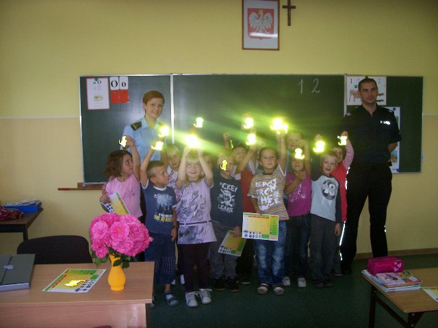 We wrześniu uczniowie klasy pierwszej spotkali się z policjantami. Dzieci dowiedziały się nie tylko, jak bezpiecznie uczestniczyć w ruchu drogowym, ale także, jak zachować się w różnych sytuacjach, które mogą się wydarzyć. Na zakończenie pierwszaki otrzymały plany lekcji oraz odblaski.
