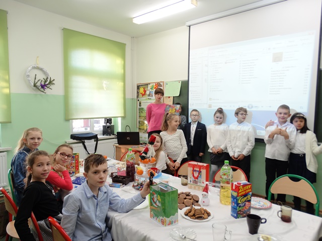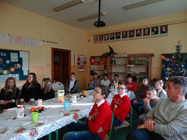 Ostatni dzień w szkole przed feriami świątecznymi, uczniowie spędzili na wigiliach klasowych. Wspólne spotkania przy choince wypełniły opowieści o zwyczajach bożonarodzeniowych, śpiew kolęd oraz wzajemne obdarowywanie się prezentami. Najmłodsze dzieci odwiedził gwiazdor z workiem pełnym prezentów. To był bardzo miły dzień.