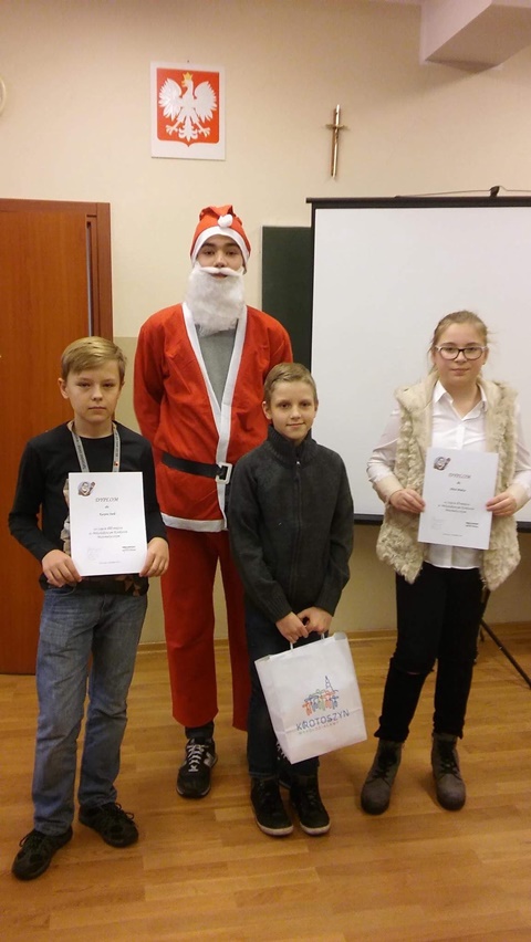 14 grudnia w Gimnazjum Niepublicznym w Krotoszynie odbył się Mikołajkowy Konkurs Matematyczny uczniów klas piątych. Naszą szkołę reprezentował Piotr Rak oraz Małgorzata Hendrysiak. Miło nam zakomunikować, że wśród 20 uczestników I miejsce zajął Piotrek. GRATULUJEMY!