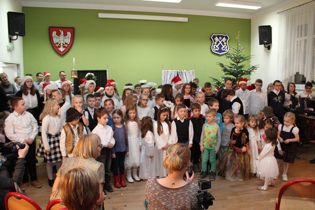 Tradycyjnie w okresie przedświątecznym uczniowie szkoły zapraszają gości na spotkanie przy choince. W tym roku miało to miejsce 11 grudnia. W niedzielne popołudnie Salę Domu Ludowego wypełniła licznie przybyła publiczność, która obejrzała Jasełka w wykonaniu dzieci z przedszkola, sztukę “Opowieść Wigilijna” w wykonaniu klasy piątej oraz wysłuchała kolęd i pastorałek przygotowanych przez uczniów klasy drugiej, trzeciej, czwartej i szóstej. Po programie artystycznym przybyli goście mogli spróbować wypieków i potraw wigilijnych przygotowanych przez Radę Rodziców.