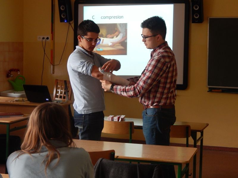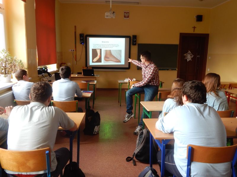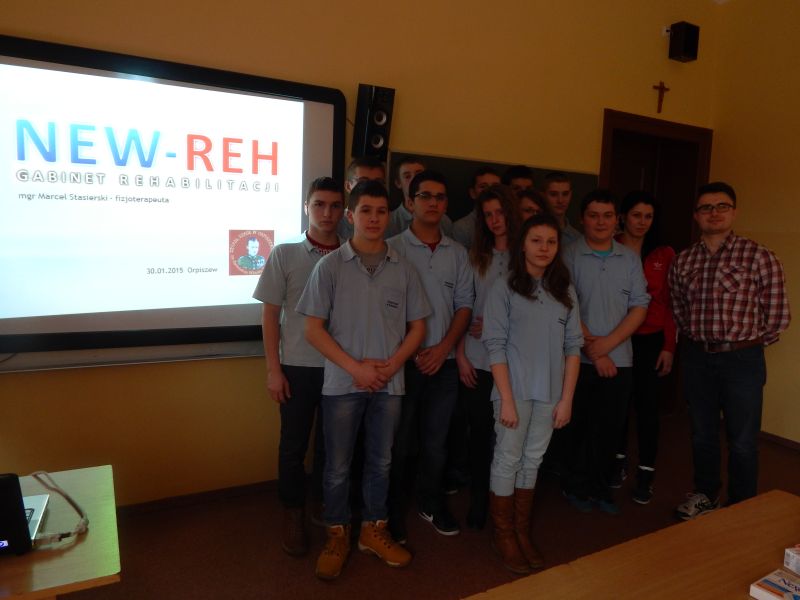W miniony piątek (30.01.2015) w ramach lekcji Edukacja dla bezpieczeństwa w Zespole Szkół w Orpiszewie w klasie III gimnazjum odbył się mini wykład dotyczący Urazów kończyn który poprowadził Marcel Stasierski absolwent Akademii Medycznej, fizjoterapeuta z gabinetu Rehabilitacyjnego New-Reh z Ostrowa Wielkopolskiego. Uczniowie klasy III gimnazjum uważnie wysłuchali cennych informacji oraz dodatkowo uczyli się jak udzielić osobie poszkodowanej pierwszej pomocy w przypadku złamań, zwichnięć czy skręceń. Dziękujemy Panu Marcelowi z Gabinetu Rahabilitacujnego New-Reh za przekazaną wiedzę, poświęcony czas, oraz sympatyczną atmosferę podczas lekcji.