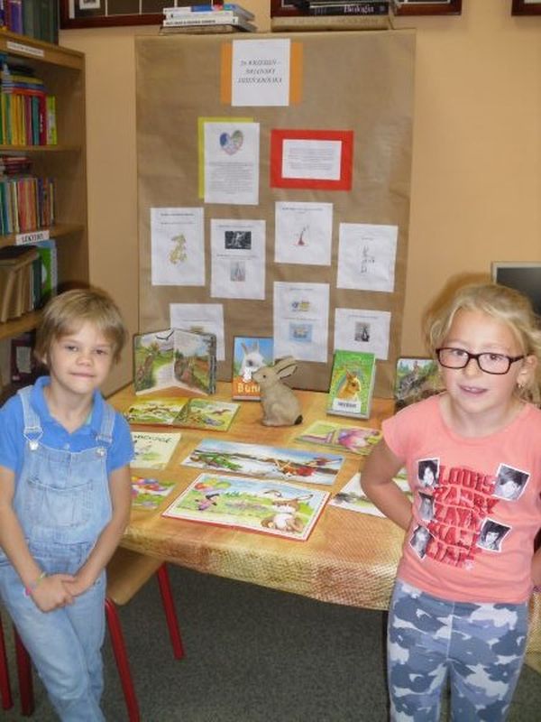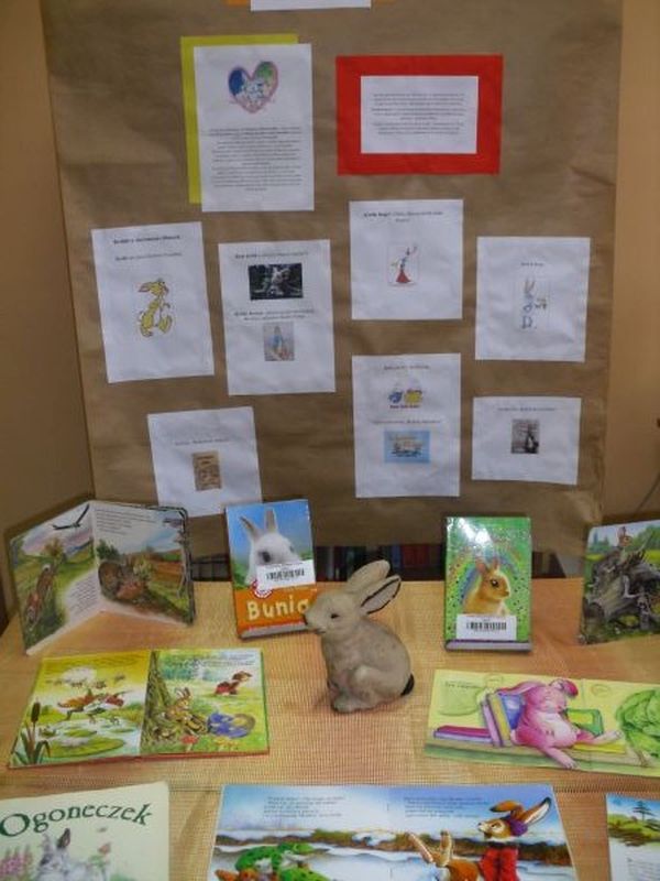 Wszyscy odwiedzający bibliotekę mieli okazję zapoznać się z księgozbiorem w którym głównym bohaterem jest właśnie królik. Na przygotowanej gazetce znalazły się m. in. tytuły najbardziej znanych książek, kreskówek oraz filmów w których główną rolę gra to miłe, puchate zwierzątko.