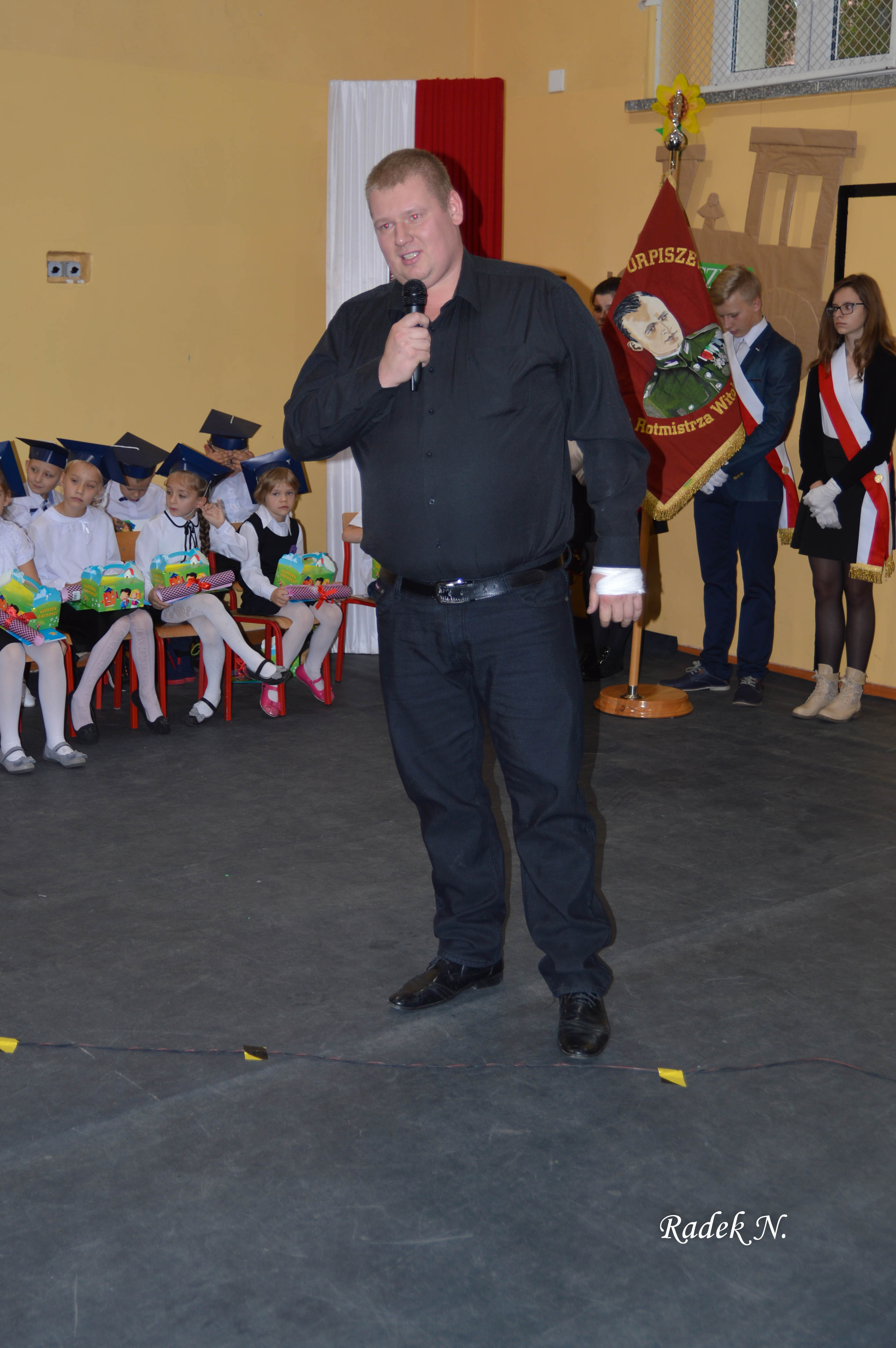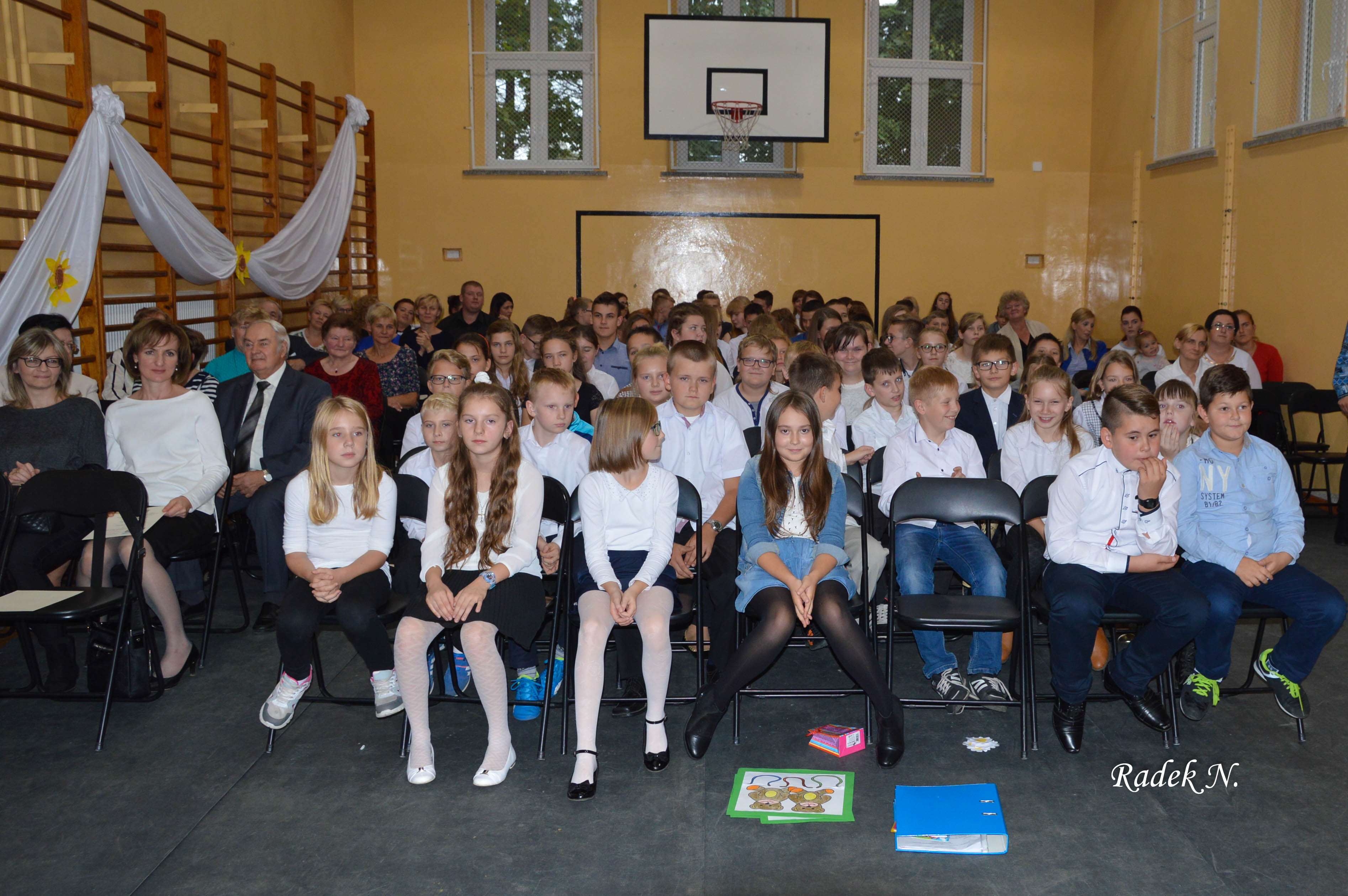 W uroczystości uczestniczyli zaproszeni goście, nauczyciele, pracownicy obsługi, rodzice uczniów klasy 1 oraz uczniowie.