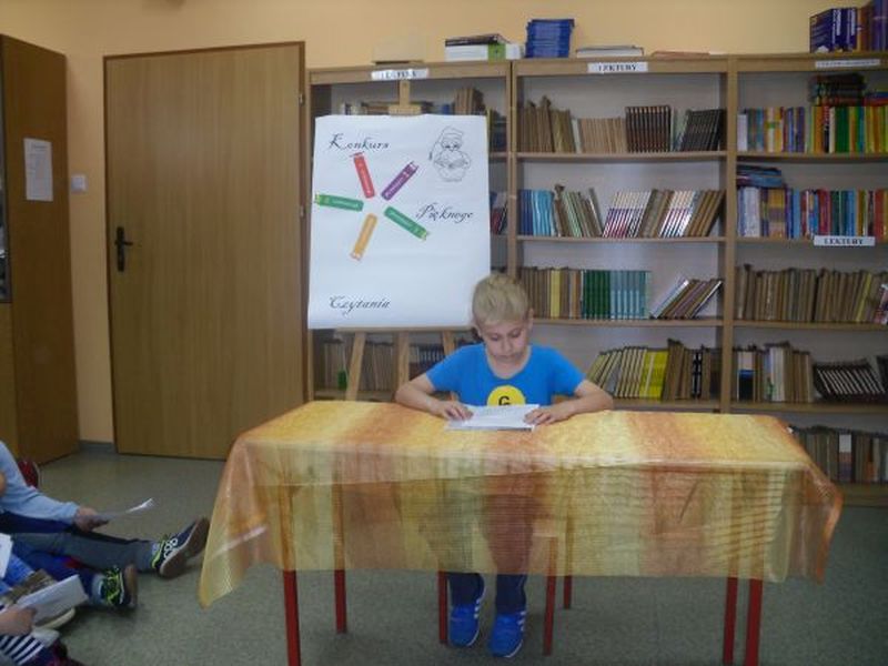Na początku uczniowie wylosowali numerki, które wyznaczały kolejność czytania przez nich tekstu. Każdy uczeń miał za zadanie przeczytać inny fragment książki autorstwa Krystyny Drzewieckiej „Piątka z Zakątka”. Jury zwracało uwagę na to, czy tekst jest czytany głośno i wyraźnie, poprawnie językowo oraz czy uczeń zachowuje właściwe tempo czytania. Ważnym kryterium była również interpretacja czytanego tekstu (modulacja głosu, uwzględnianie znaków interpunkcyjnych, nastrój tekstu itp ).