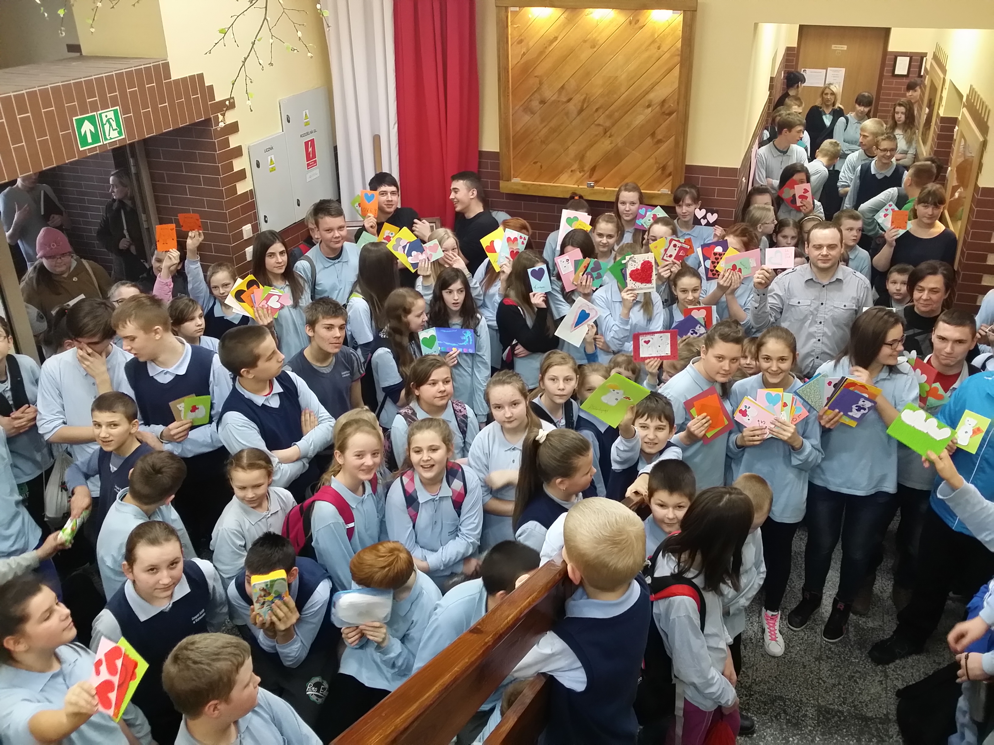 Były one sprzedawane na przerwach i cieszyły się dużą popularnością. Zysk z tej akcji (130 zł) został przekazany na S.U. W piątek, tj. 13 lutego wysłane kartki walentynkowe zostały rozdane uczniom na szkolnym apelu. Na załączonych zdjęciach widać jakim zainteresowaniem cieszyła się nasza akcja.